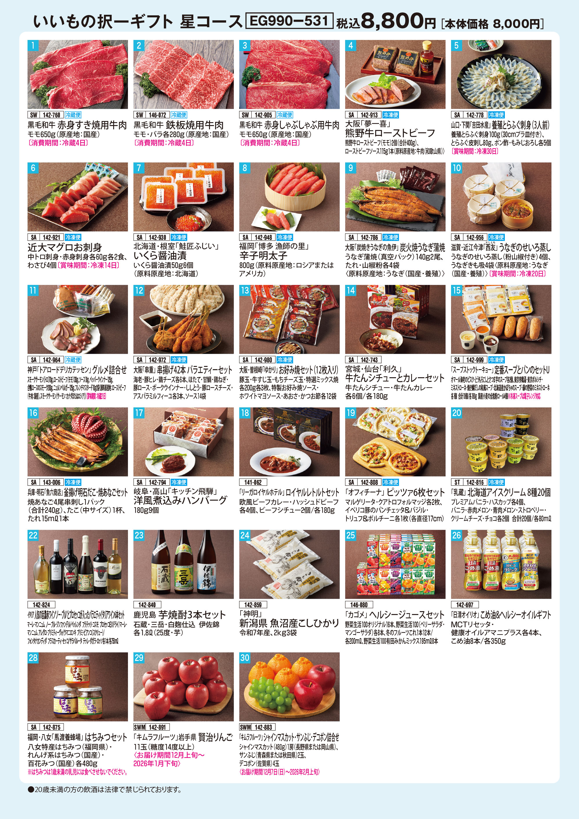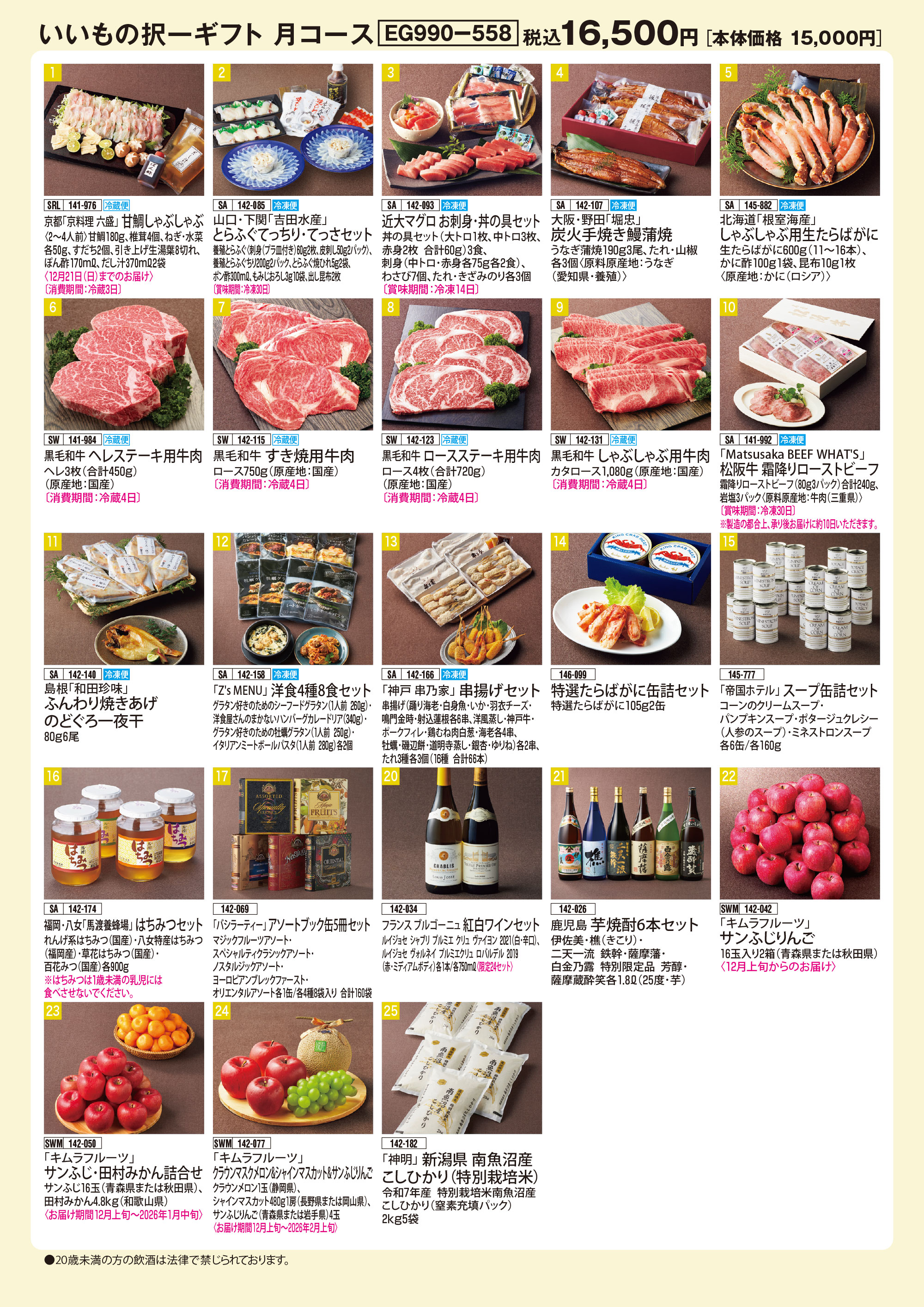 - ※いいもの択一ギフトと商品券等との交換、商品お届け後の返品、変更等はできません。